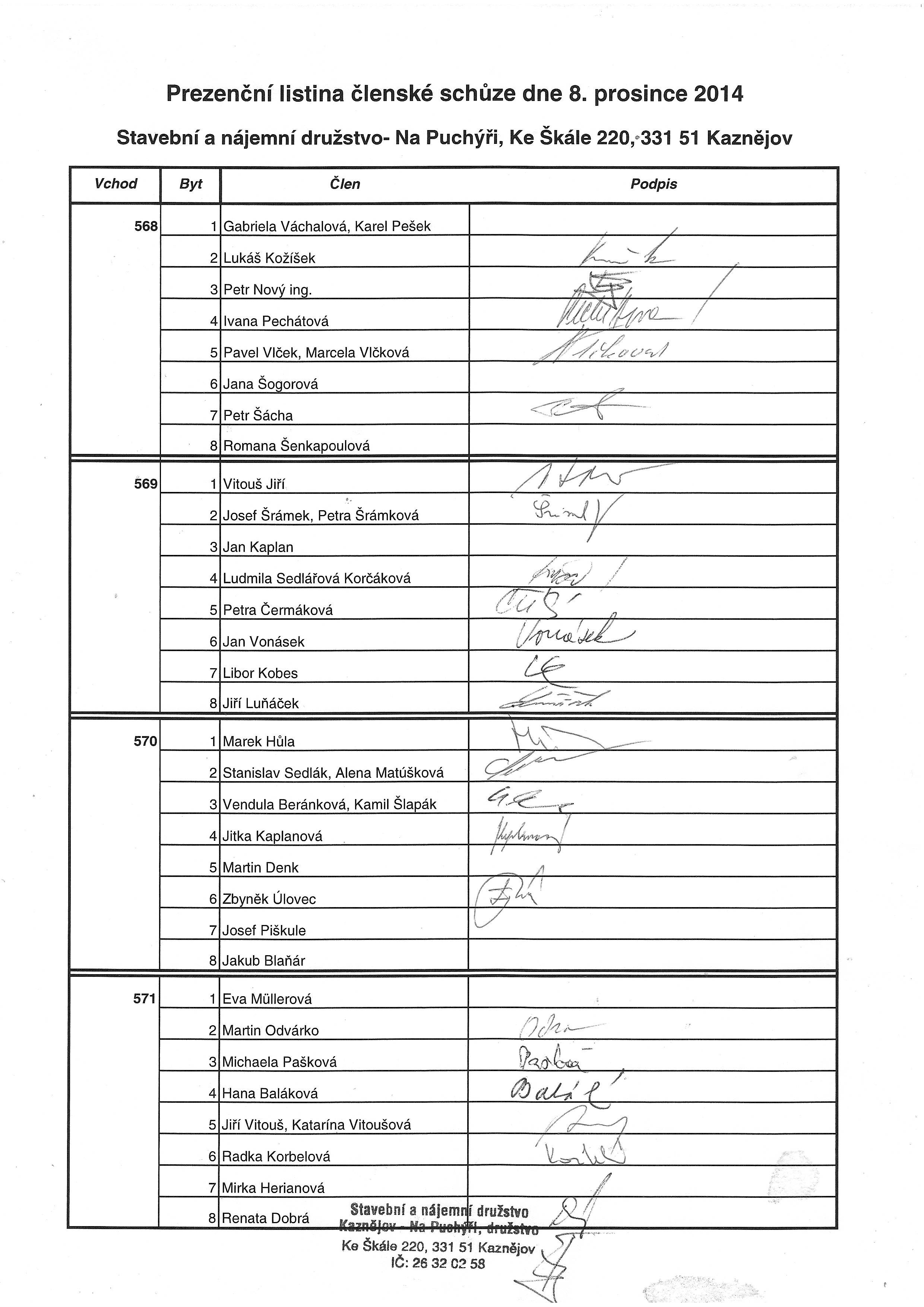 Dne 10. února 2015 byla Krajským soudem provedena Změna v obchodním rejstříku v souladu s usnesením členské schůze 8/12/2014 a novými stanovami.